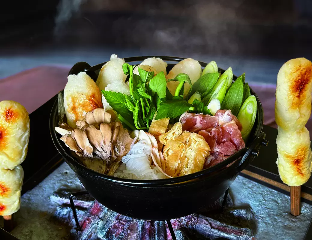 きりたんぽ・・・秋田産あきたこまち100%使用、じっくり時間をかけて焼きあげました。
